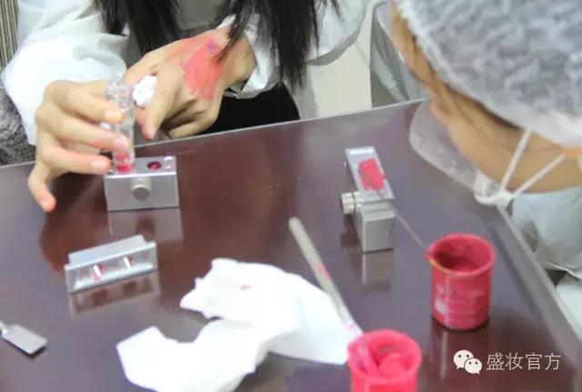 隨后,參觀人員又來(lái)到了口紅制作實(shí)驗(yàn)室,在這里,彩妝研發(fā)工程師為大家講解了手工制作口紅的基本工藝流程和注意要點(diǎn),并和大家一起完成了口紅的配料、加熱、倒模、冷卻成型的全部過(guò)程。