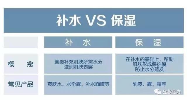 很多人對補(bǔ)水和保濕這兩個概念依舊混淆,下面這個表可以清晰說明兩者之間的區(qū)別。