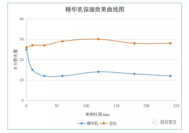 報(bào)告中一生之水和精華乳的補(bǔ)水和保濕曲線如下: