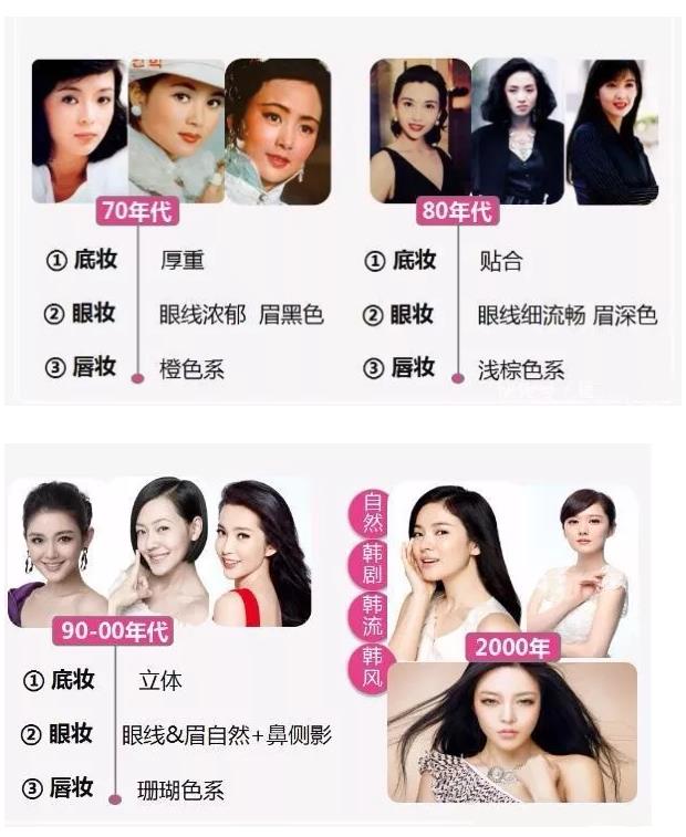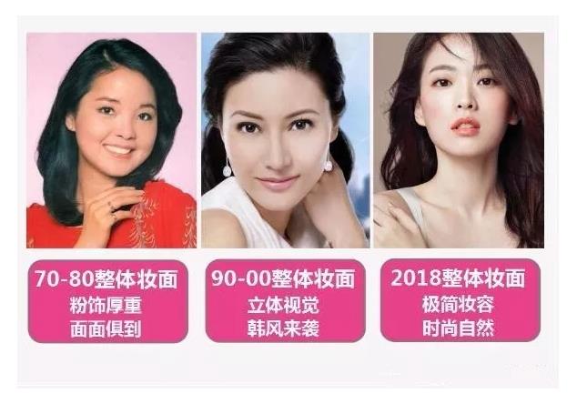 不同的時(shí)代,有不同的流行妝容,比如70-80年代妝容厚重,90-00年代韓式妝容風(fēng)一陣刮過,到如今開始崇尚妝容自然,裸妝、素顏妝。