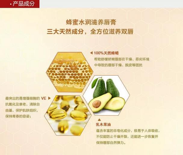 這款唇膏選用的荊花蜂蜜,是四大名蜜:荊條蜜、棗花蜜、槐花蜜、荔枝蜜,之一。