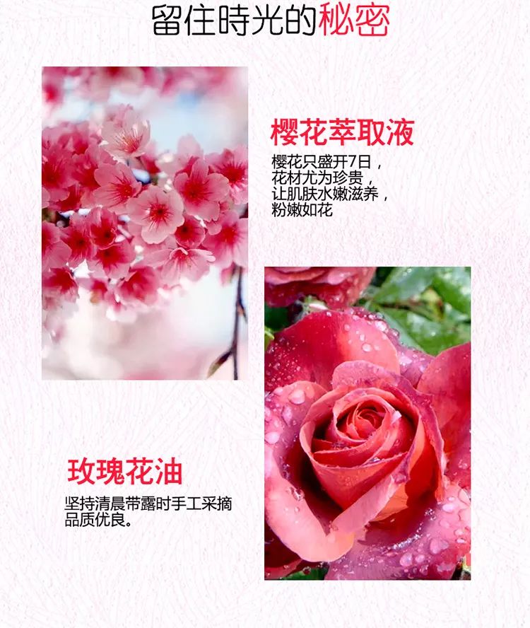 櫻花只開7日,因此花材尤為珍貴。櫻花皂選自手工采摘的櫻花花瓣,洗后持久留香。還添加了玫瑰花油等天然植物精油,多重滋養(yǎng)皮膚,給肌膚滋潤享受。