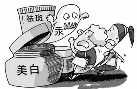 使用非法添加汞的美白祛斑化妝品會造成汞中毒,引起汞中毒性腎病、腦衰弱綜合征等病癥。這種全身危害更可怕。