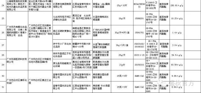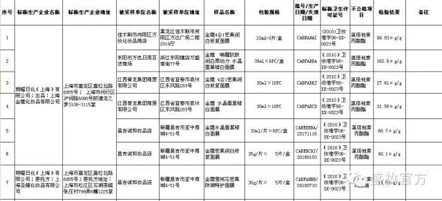 1、朗曜日化(上海)有限公司:金蔻4合1密集潤白修復(fù)面膜等7批次產(chǎn)品;